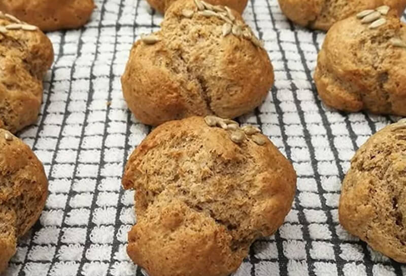 Do miski dodaj rozdrobnione drożdże i cukier. Wlej mleko i odstaw na ok 2-3 minuty. Następnie dodaj resztę składników i wyrób ciasto. Zostaw, aby urosło w ciepłym miejscu na 15-20 minut. Podziel je na 8-10 części i uformuj z nich bułeczki. Wyłóż je na blasze wyłożonej papierem do pieczenia i odstaw na kolejne 15 minut. Upiecz w piekarniku w temperaturze 200 stopni C przez 20 minut.