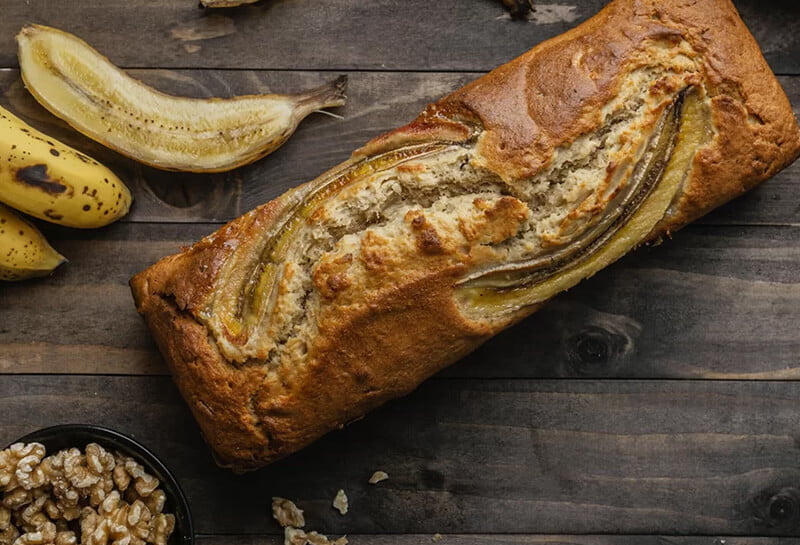 Wszystkie składniki powinny być w temp. Pokojowej. Trzy dojrzałe banany rozgniatamy za pomocą widelca na papkę. Płatki owsiane górskie mielimy w blenderze na konsystencję mąki. Do zmiksowanej masy dodajemy zmielone płatki owsiane, pół łyżeczki cynamonu, 70 g oleju i łyżeczkę proszku do pieczenia. Całość mieszamy za pomocą łyżki lub delikatnie miksujemy jedynie do połączenia się składników. Ciasto powinno wyjść dosyć gęste. Ciasto przekładamy do mniejszej keksówki wyłożonej papierem do pieczenia. Na wierzchu ciasta układamy przekrojonego na pół banana. Piec przez ok 35 minut w temp. 185 stopni (bez termoobiegu) do tzw. suchego patyczka.