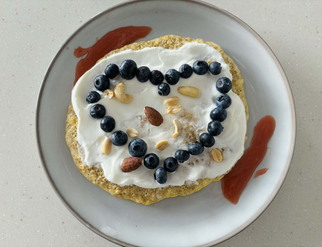 Spód: Zmiel płatki (lub rozgnieć blenderem). Wymieszaj z kakao, masłem orzechowym i mlekiem. Wyłóż na dno szklanego pojemnika i dociśnij łyżką. Krem: Wymieszaj skyr z jogurtem. Wyłóż na spód. Karmel + orzechy: Wymieszaj składniki karmelu i polej po wierzchu. Posyp...